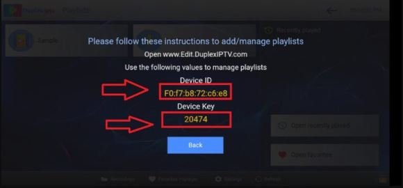 5. Saisissez votre “ID de périphérique” et “Clé de périphérique” dans les champs correspondants. Cochez la case “Je ne suis pas un robot” et cliquez sur “Gérer les listes de lecture”.