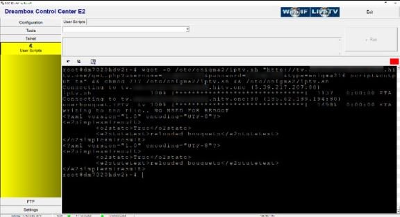 Une fois connecté à votre box via Dreambox Control Center, vous devez exécuter la commande Autoscript fournie par votre fournisseur IPTV.